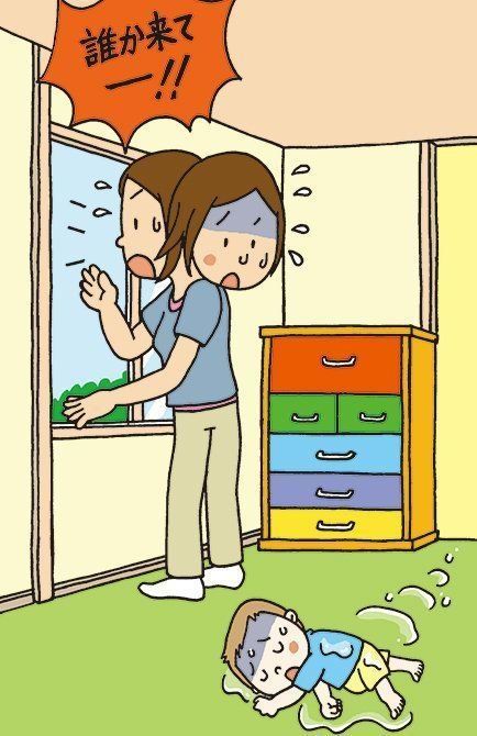 そのため、鼻と口を覆うだけの水があれば、数cmの水位でもおぼれてしまいます。水の事故は浴室、トイレ、洗濯機、洗面器の水、ペットの水槽などで起こります。家の中での事故防止を徹底しましょう。