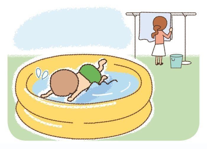 ビニールプールで遊ばせているとき、ママが飲み物を取りに行くなどして、その場を離れた間に足をすべらせて顔を水につけてしまうこともあります。