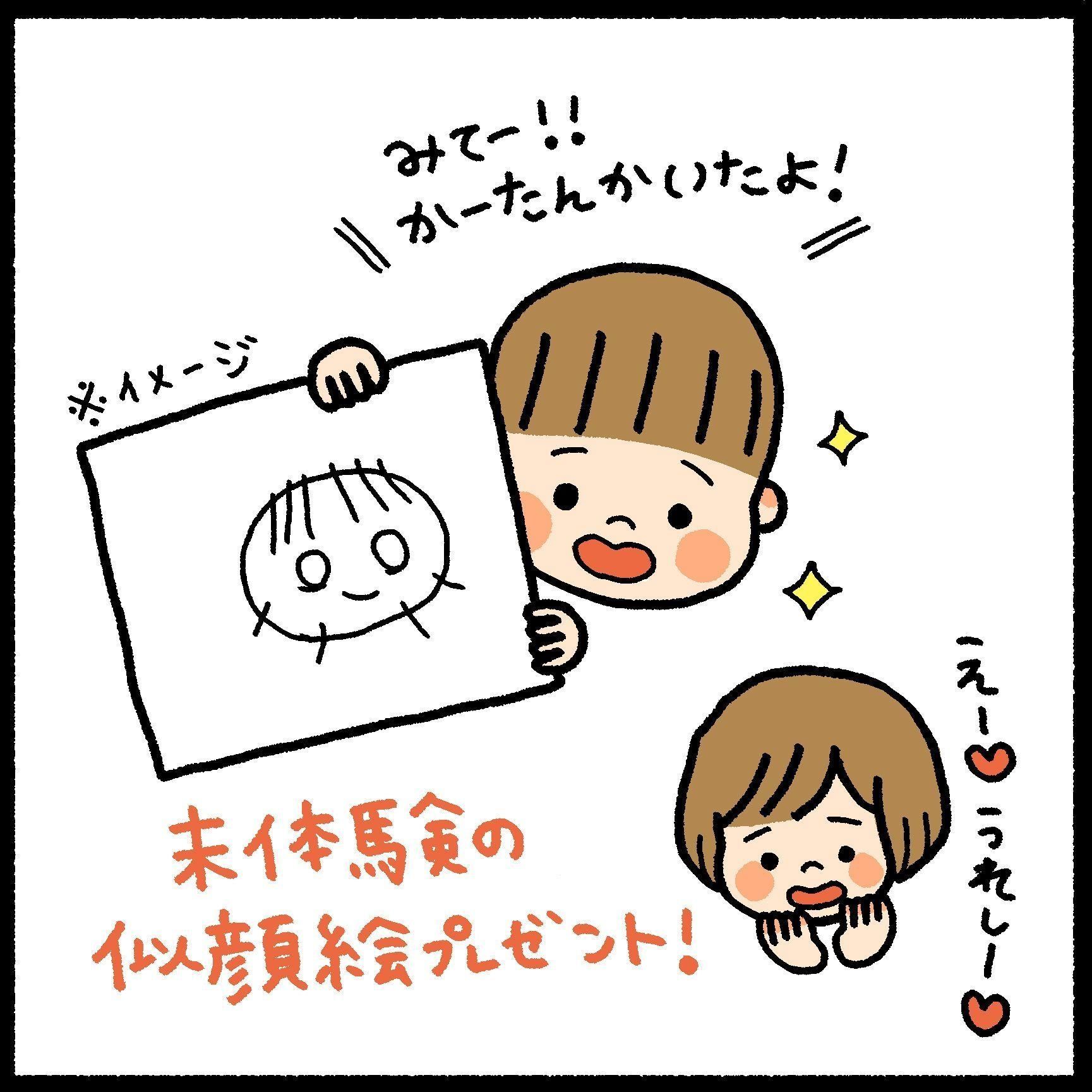 はじめての似顔絵プレゼントを夢見てドキドキする母でした。