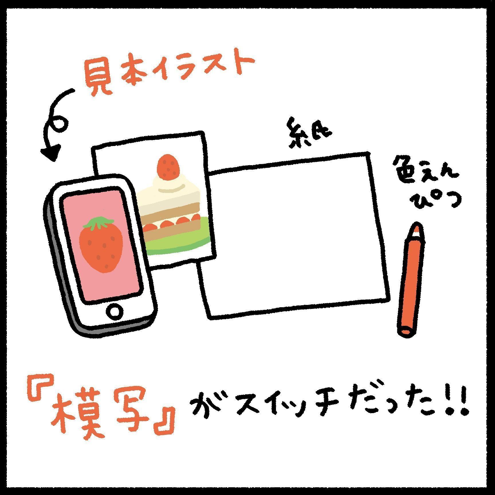 チラシのイラストやスマホで検索したイラストを見ながら