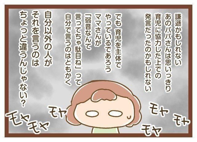 でも、あのママさんも、もし私たちと同じで毎日大変な思いをして育児を頑張ってる中でパパさんに「弱音なんて言っちゃ駄目だよな!」って笑顔で言われたら。