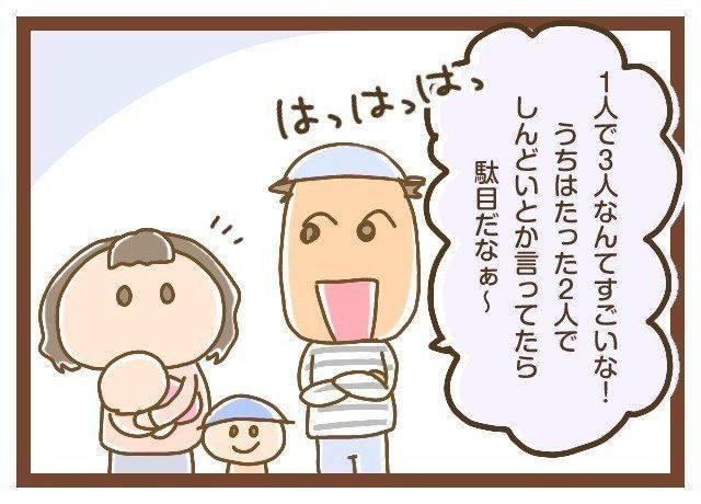 三つ子を1人で連れているとしょっちゅう声を掛けられるのですが「そんな大変な思いをしてるあなたの前で弱音なんて言えないわ~」と言われることが多いです。