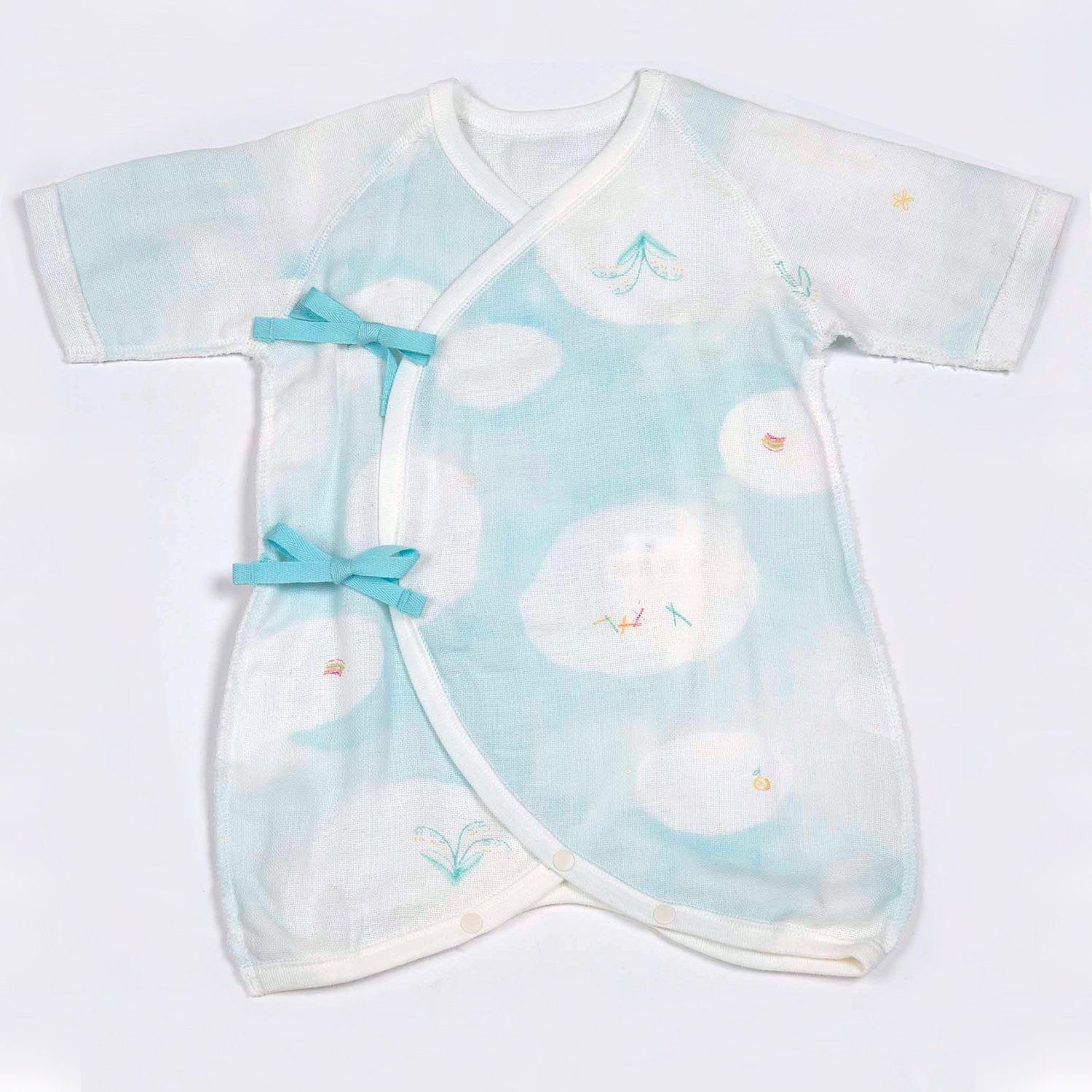 青い空に、雲が浮かんだようなデザインの肌着。ブルー コンビ肌着[50~60㎝]3024円/NAOMI ITO(10mois web shop)