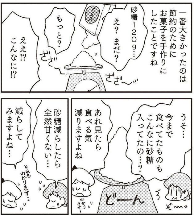 そんなYさんが「プチ依存」に気づいたのは、お菓子作りを始めた頃。節約のために自分でクッキーを作ろうと材料を準備していたときのことです。クッキングスケール(料理用はかり)に乗った大量の砂糖を見て、「私、今までこんなに食べていたの!?」と驚き、思わずゾッとしてしまいました。