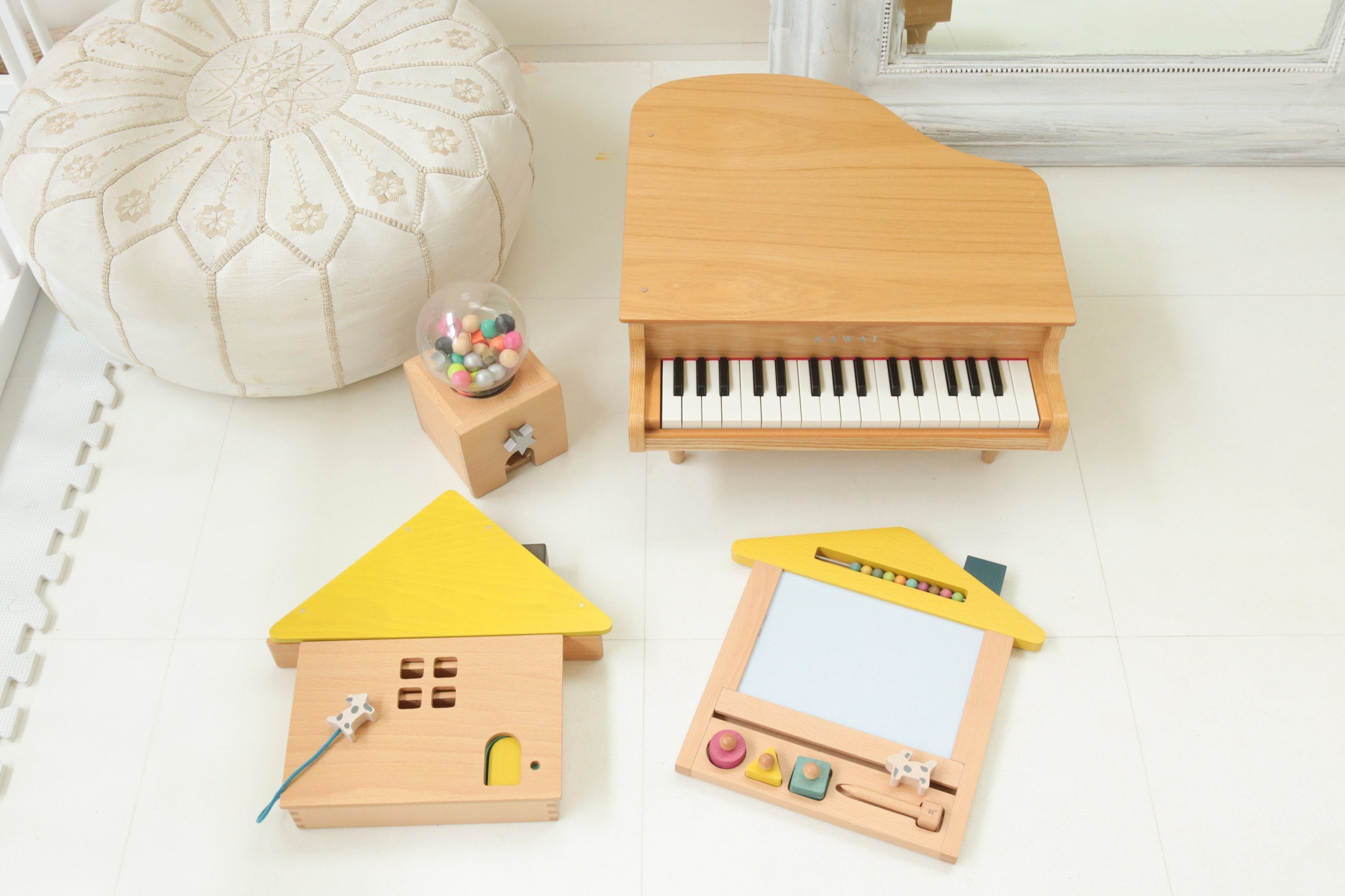 1才11ヶ月の女の子、きこちゃんのおもちゃ。トイピアノはカワイ、ほかは「kiko+」&「gg*」のもの。