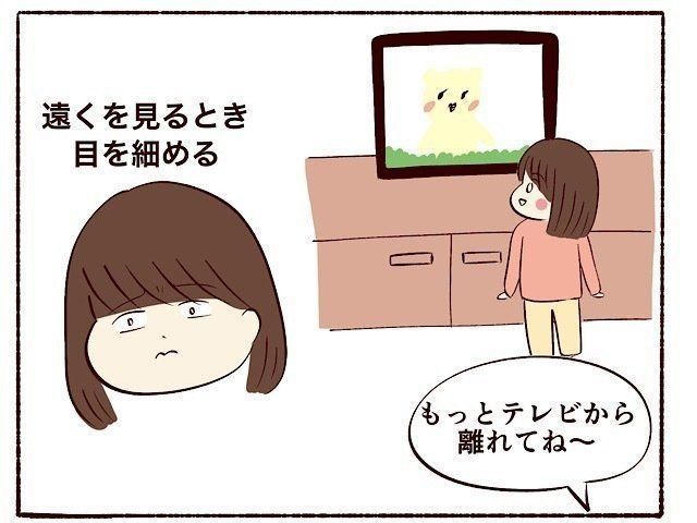 4歳になった頃から、テレビをものすごい至近距離で観るようになったり、遠くのものをみるときに目を細めるようになりました。