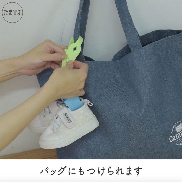 クリップの先に、靴を入れてはさむだけ。編集部でやってみて、ものの3秒ではさめました!