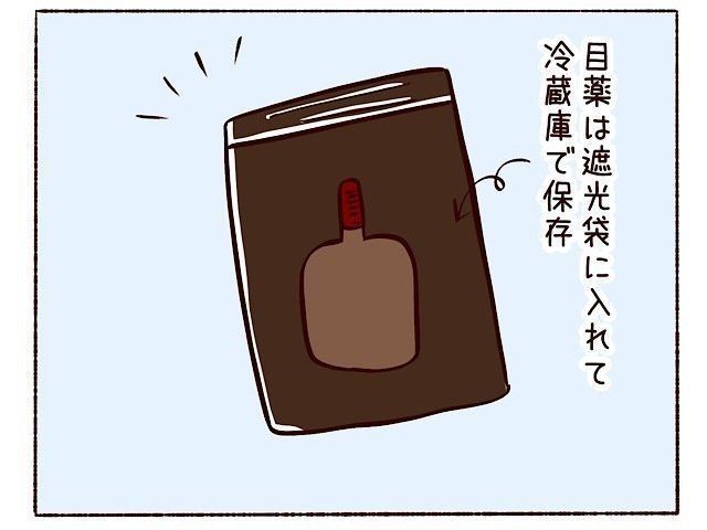 この目薬をしていると瞳孔が開いた状態になって、視界がぼやけたり、日の光がいつもより眩しく感じたり、手元が見えづらくなったりします。階段の上り下りやはさみを使った作業などは気をつけてみてあげてください」とのこと。