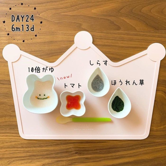 黄色が鮮やかなコーン粥をベースに、ほうれん草ペーストでキャラクターを用いたizumi(@minato.s.gohan)さんの離乳食。センス抜群で、お店のメニューのようなクオリティですよね! 白粥を使ったアートに慣れてきたかたは、ぜひトライしてみては? izumiさんは他にも色々なデザインのお粥アート写真を多数UPされているので、アイデアの参考にしたいかたは要チェックです♪