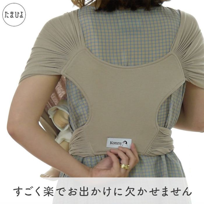 「“コニー”は韓国のブランドで、とっても軽い抱っこひもなんです。Tシャツ感覚で脱ぎ着できるので大助かりです」
