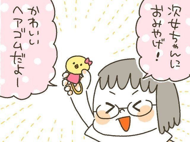 そんな時、長女がかわいいヘアゴムを買ってきてくれ、次女もそれを気に入った様子。