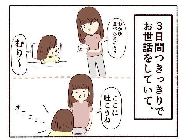 「私が風邪をうつされたら、看病する人は誰もいない!絶対にうつらない!」という思いで看病していた甲斐あってか、3日間娘につきっきりでしたが私はピンピン元気でいられました。