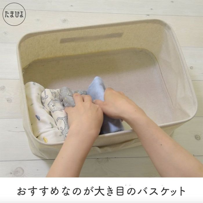 さらに、写真のタイプの収納アイテムの場合、ベビー服をたたんで「立てて」しまうのがおすすめとのこと。