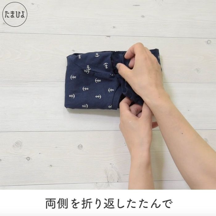 そのまま、裾側と肩側を左右、折りたたんでいきます。