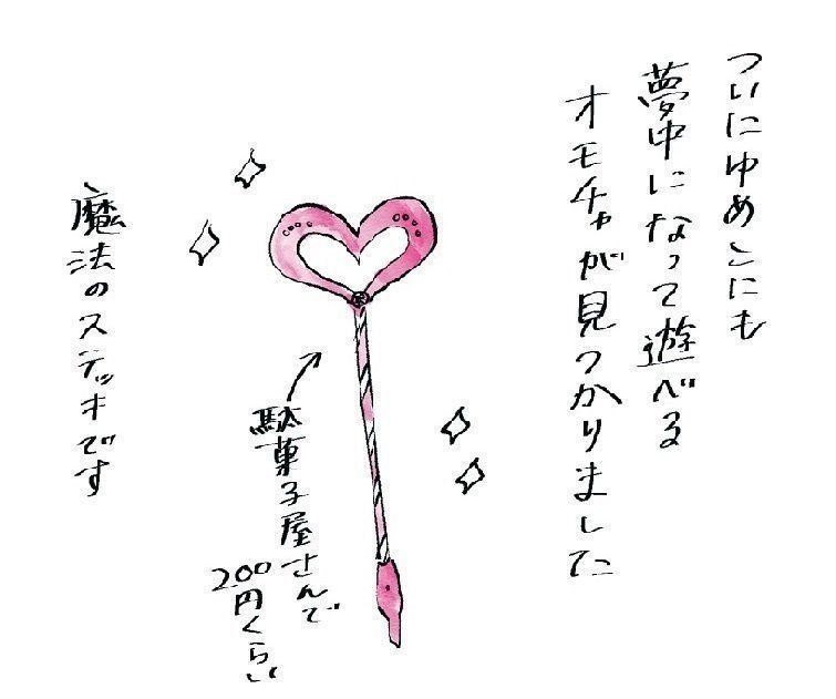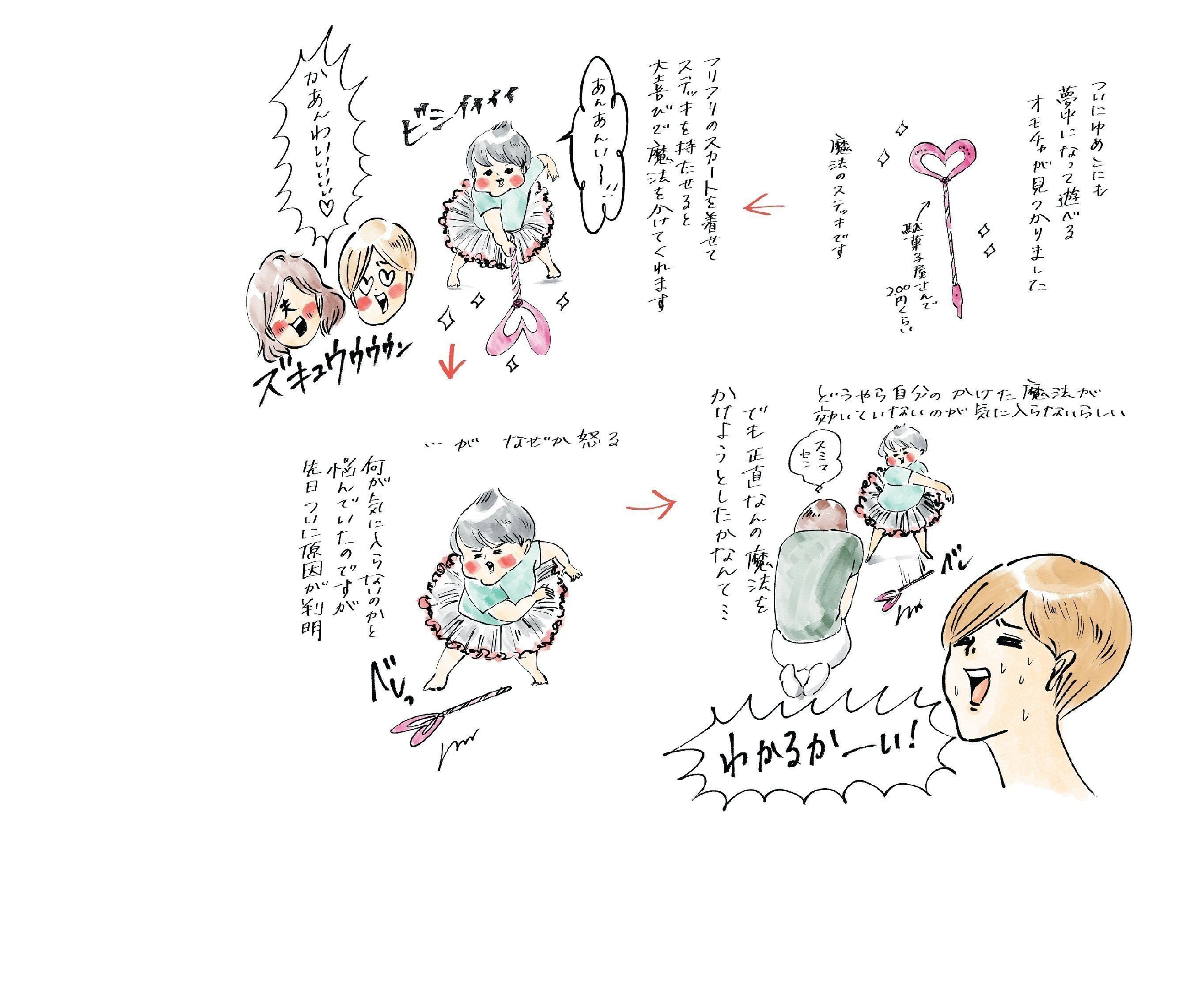 ついにお気に入りのおもちゃを手に入れたゆめこちゃん。それは魔法のステッキ!そんなゆめこちゃんにまわりは胸キュン!長男・まめちゃんの言動をコミカルに描いた育児絵日記が、インスタグラムで大人気の横峰さん。この連載では、第2子・ゆめこちゃんが主役!