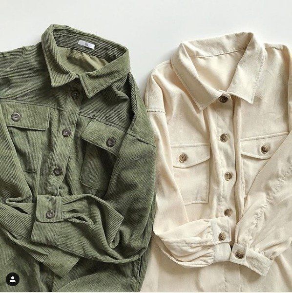 少し厚手のカーキシャツとカーキシャツよりも少し薄手のアイボリーのシャツを購入したmu-さん。色味がちょうどよくてお気に入りなんだそう。