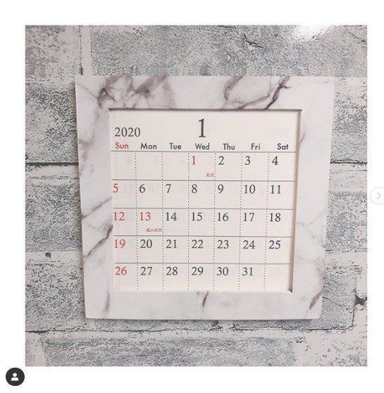 yuiさんはダイソーで大理石柄のフレーム付きカレンダーを購入。磁石がついているそうで、好きなところにペタっと貼って使えるところもお気に入りなんだとか。シンプルなのにとってもおしゃれでいいですね♪