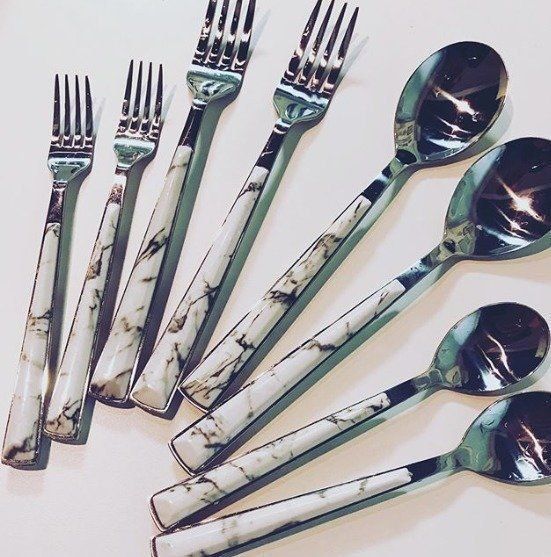 @k.o.o.o.o.o.o.o.oさんはカトラリーを大理石柄で統一!こちらはダイソーで購入されたそうです。いつもの食事も、まるでカフェのようなおしゃれな雰囲気になりそうです!100円ならたくさん買って揃えたくなりますね。