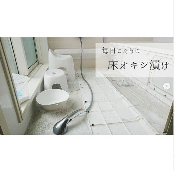 h a r u さんはバスグッズやエプロンなどをまるごとオキシ漬け!引き戸のレール部分などもキレイになるそうで、これをやると気分がスッキリするそう♪ 漬けておくだけなら簡単にしかも一気にキレイになって気持ちいいですよね!
