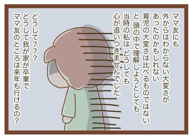 どういう基準で選んでるのかは全く知りません。そして、育児家事の大変さは比べるものでもない、ママ友はママ友でとっても大変なんだ!と頭では分かっていても、当時の私はどうしても心が追いついていかなかったのです…。