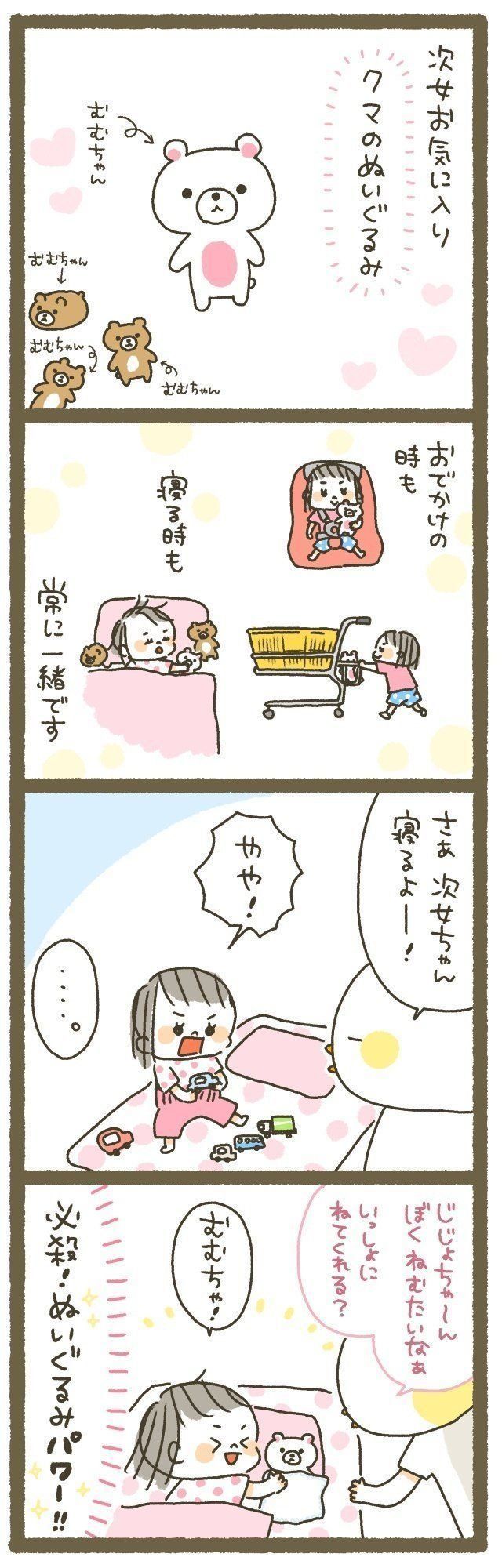 ぬいぐるみの好きな次女ですが、中でも一番のお気に入りは白いクマの「むむちゃん」!