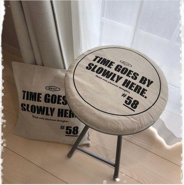 ナチュラルな雰囲気の丸椅子カバーと、おそろいのクッションカバーを購入したkunikuniさん。普通の丸椅子がおしゃれに♪お部屋に統一感を出したいときに良さそう。