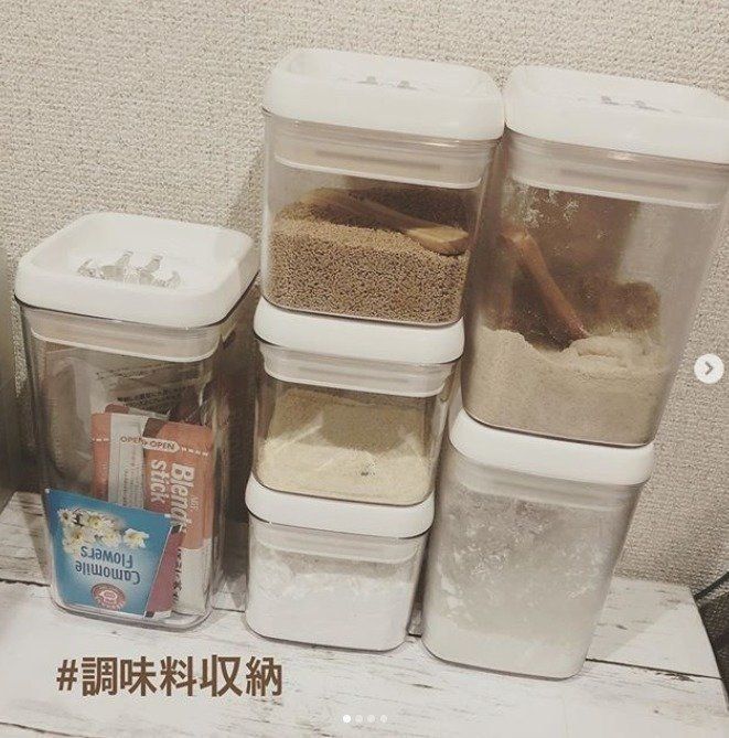 rihitoさんは、調味料の収納にイージーレバーキャニスターを愛用中♪ しっかりと密閉できるのに開閉が簡単なのが魅力なんだとか。サイズもさまざまな種類が展開されていて、中身や収納場所に合わせて購入できるのもいいですよね。