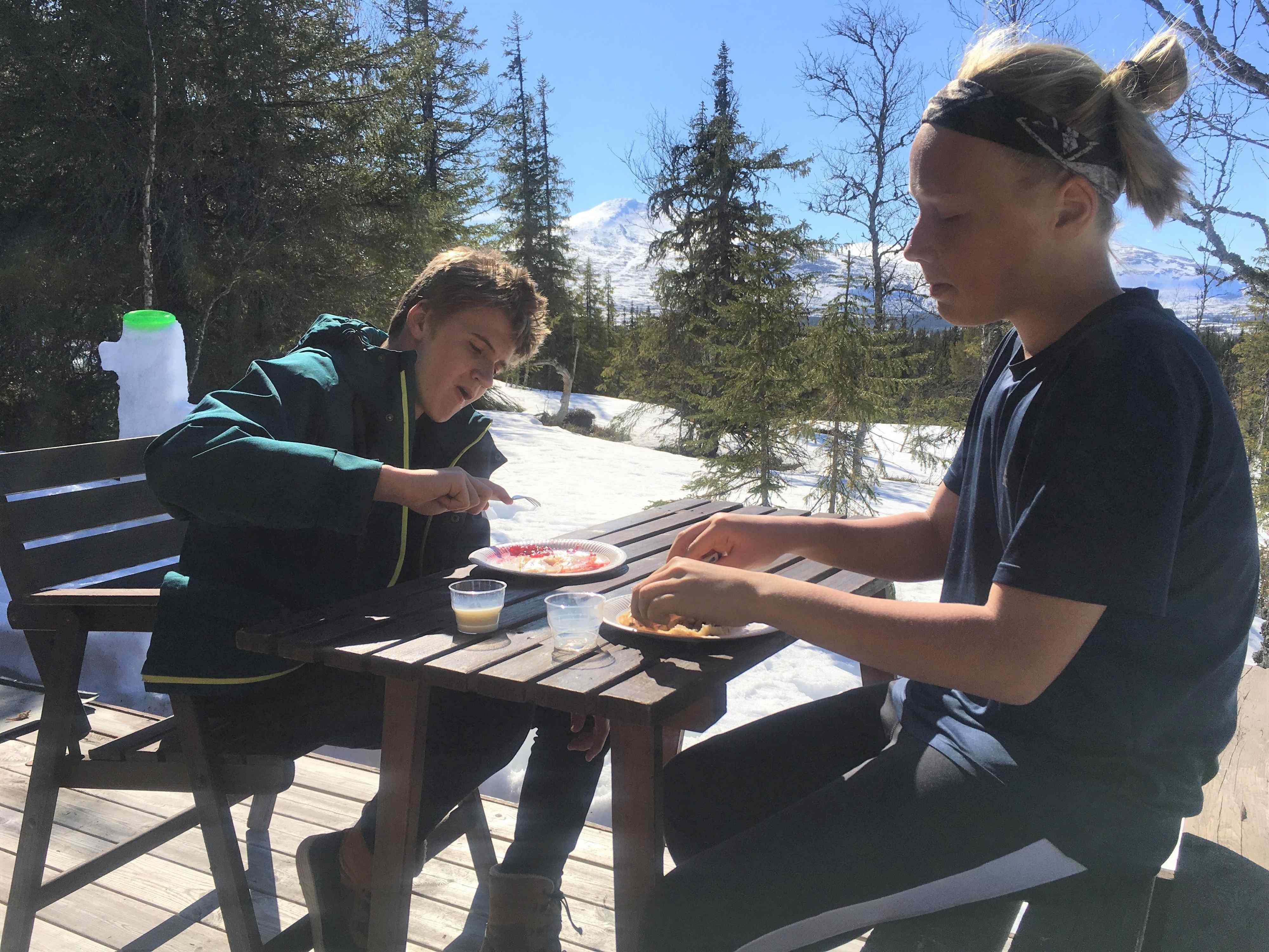 山の中の別荘に滞在中、二人が食べているのもやっぱりパンケーキで、大好物なんだそうです。