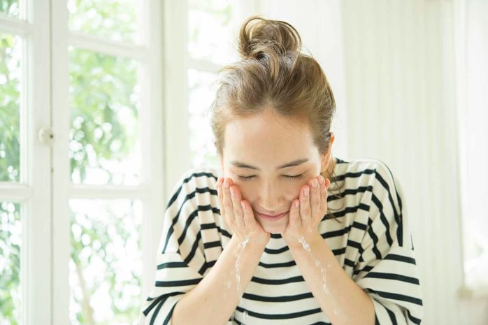 「乾燥肌なので、必要な皮脂まで落とさないために、朝はお湯洗顔のみ」と、辻元さん。夜にしっかり洗顔しているため、朝は洗顔料を使わないのだとか。