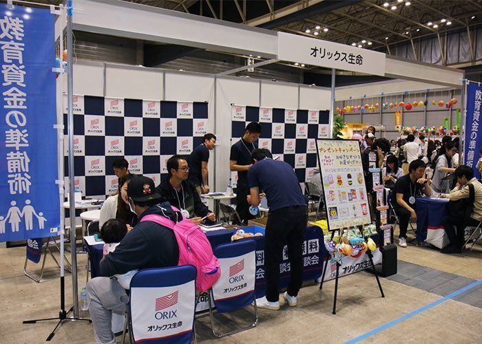 オリックス生命のブースには、子どもの将来のために保険の見直しを考えているファミリーが続々来場。ファイナンシャルプランナーに無料相談できるとあって、将来の子どもの教育費や今加入している保険の保障内容についてなど、気になる悩みを相談しているママ・パパの姿が印象的でした。イベント中に記入したアンケートの情報をもとに、さらに詳しい相談ができる後日面談の予約ができる特典も。