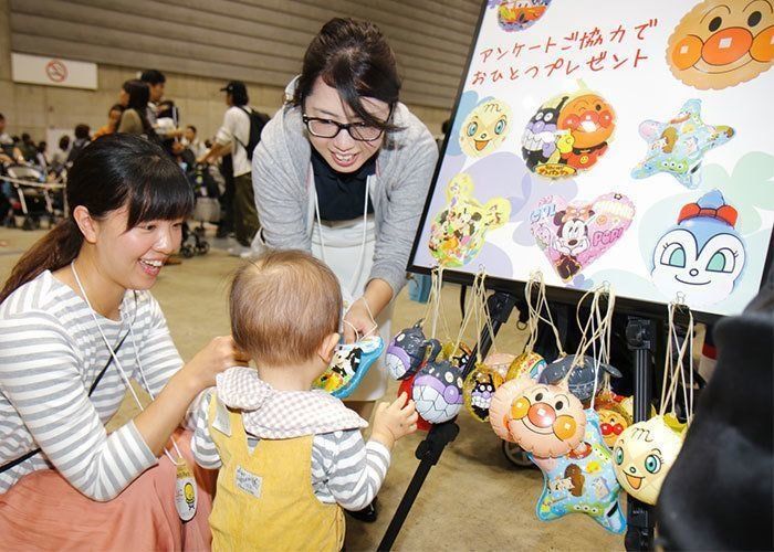 参加者には、子どもが大好きなアンパンマンと仲間たちのミニバルーンプレゼントも。女性スタッフからバルーンをプレゼントされ、うれしそうにしていた圭汰(けいた)くん(1才)。ママの成美さんにイベントの感想を聞いてみると「保険の見直しは気になっていたんですが、子連れだとなかなか落ち着いて相談に行けなくて…。こういう機会があると、気軽に相談できていいですね」と、保険を見直すいいきっかけになったようです。