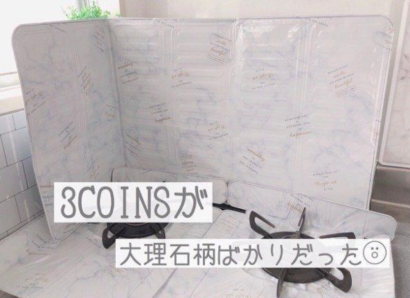3coinsに行ったら、大理石アイテムがたくさんありすぎて目移りしてしまったというAYAKA(POME氏/宇佐美)さん。かわいいコンロカバーになかなか出会えず買えずにいたそうですが、こちらは即決したそう(^^)