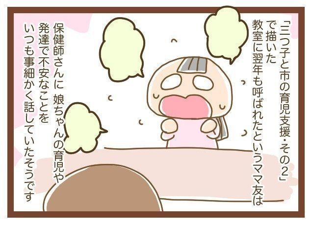 育児支援教室に翌年も呼ばれたママ友は、普段からたくさん話をする仲でした。そのとき、娘ちゃんの発達が心配なことを具体的な例を交えてとても事細かに話していました。