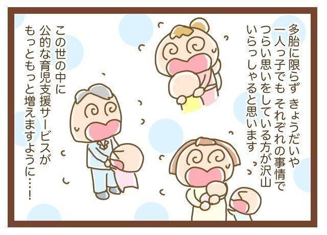 もっと多胎育児についての理解が広がってくれると嬉しいです。