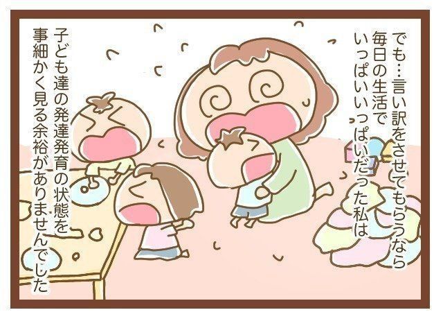 毎日の家事育児が大変すぎて、大げさではなく「3人を生かすのに必死」な育児をしていたのです。子ども達の発達を事細かに見る余裕はとてもありませんでした…。