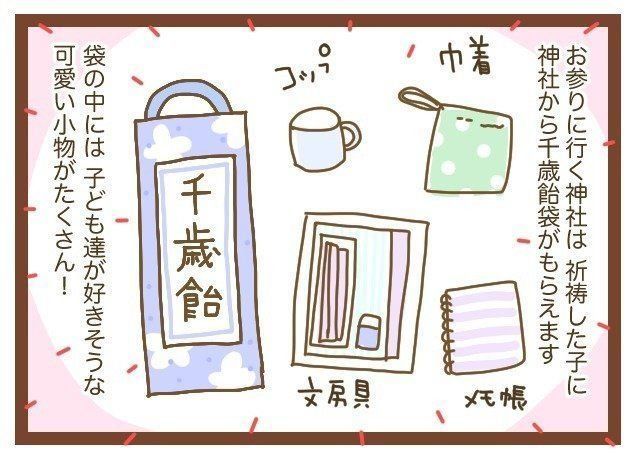 神社から男の子ふたりに千歳袋をいただいた時、隠してた千歳袋を長女にも渡しました。