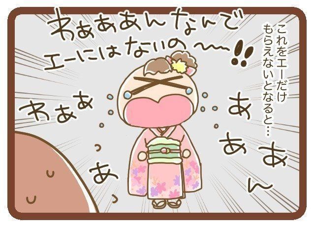 男子2人だけもらって、エーだけない!…となると、きっとエーは怒ります。機嫌悪くなります。めちゃくちゃめんどくさいです。せっかくキレイな着物を着ているのに!!