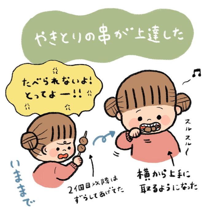 以前は串に刺さっている2個目以降が食べられずズラしてもらって食べていたのですが、