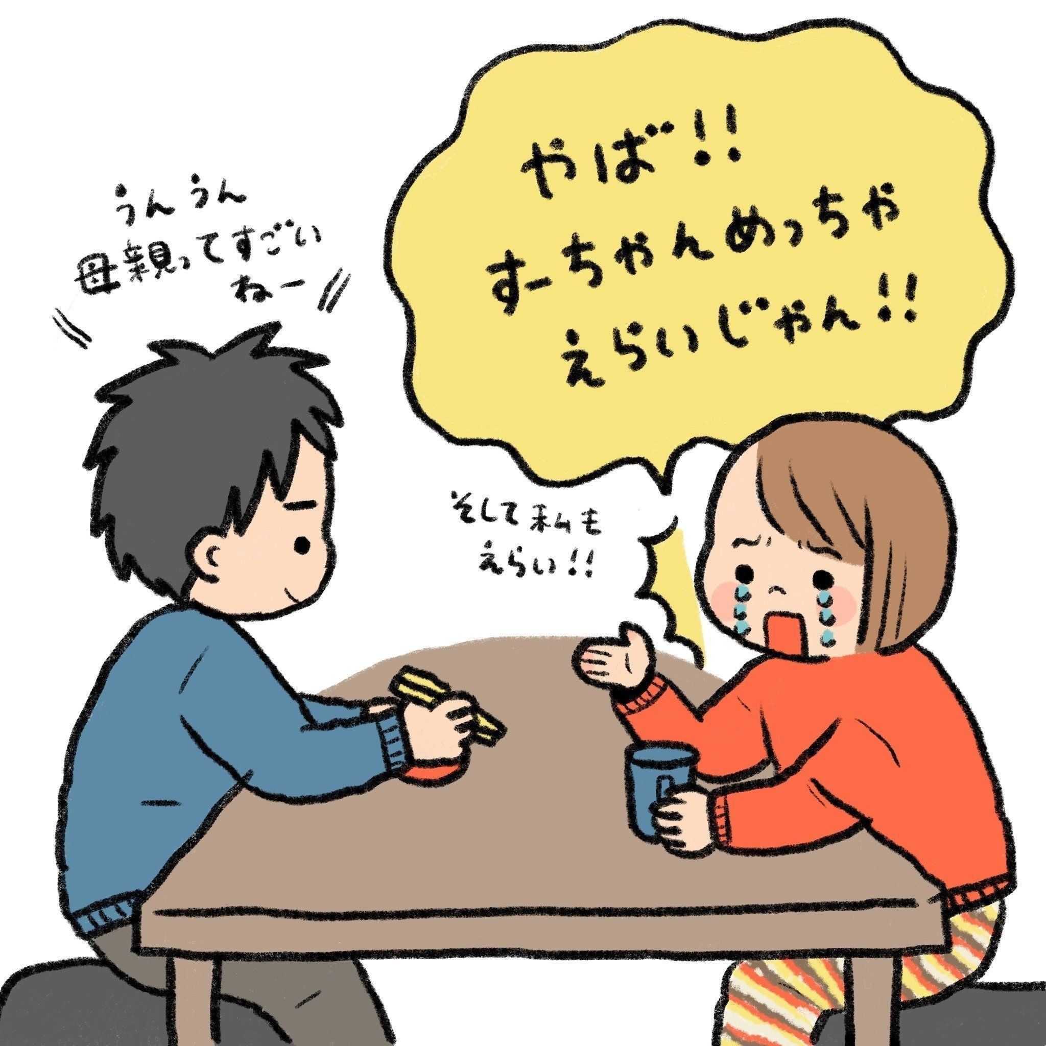 「自分えらいじゃん!!」「母親してんじゃん!!」