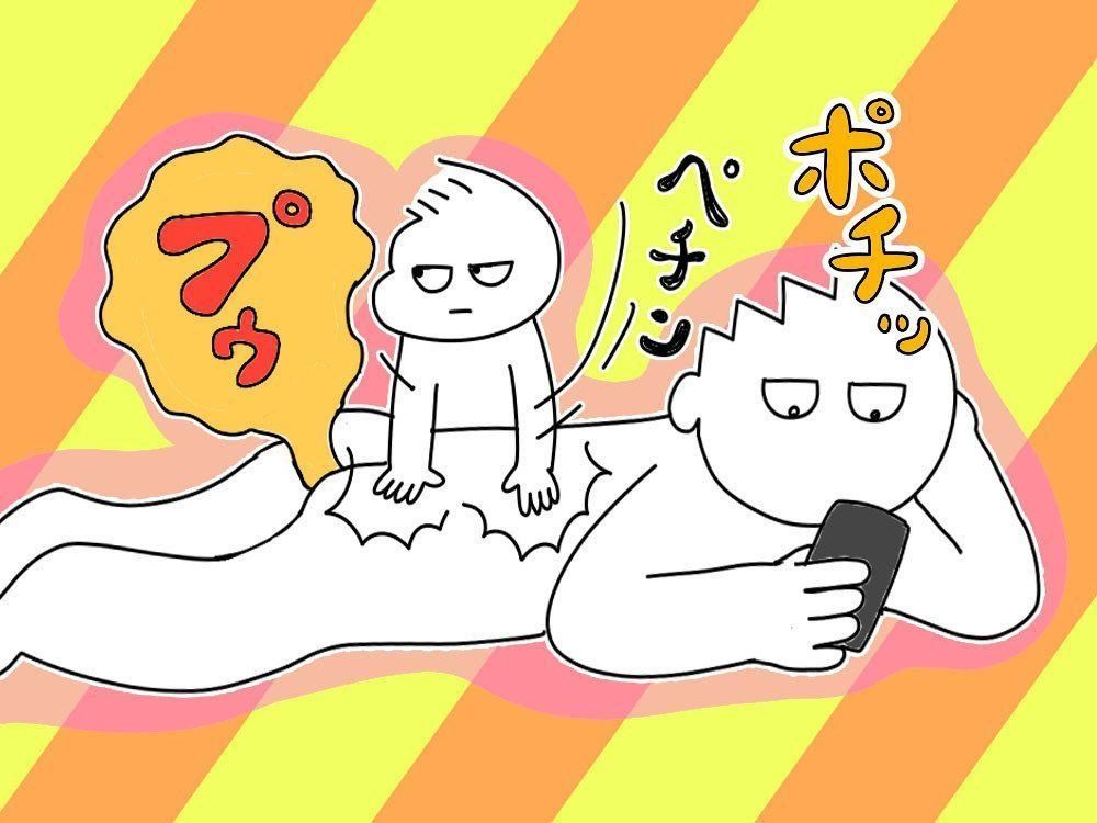 スマホをいじりながらゴロゴロしていると息子が背後から音もなく寄ってきます。