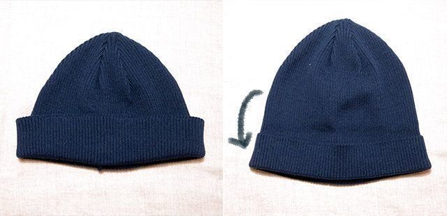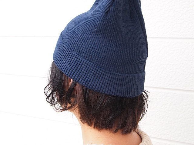 キャップの裾をくるんと伸ばして、キャップの長さを調節できる2WAY仕様。着用写真では長くした状態で被っています。ユニセックスなニットキャップなので男性も使えそうですね♪