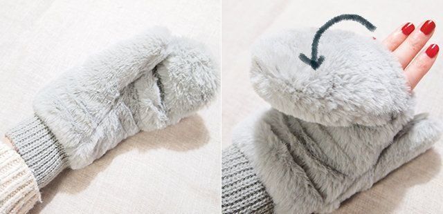 ふわふわと気持ちの良い肌触りで、とってもあたたかいので身につけるとやみつきに。指先はカバーが外せるので、ちょっとスマホをつかいたいときや、お財布から小銭を出すとき、わざわざ手袋を外さなくてもOK。手首の部分は頑丈なリブ素材で冷気をしっかりガードできます。