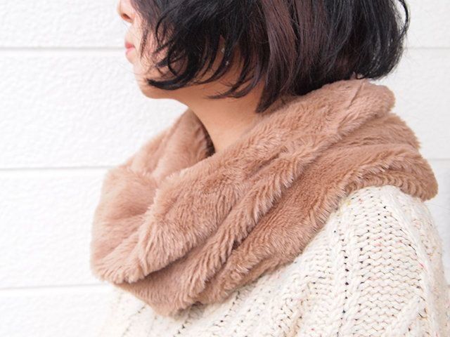 お次は「洗えるファースヌード」300円(税抜)。“洗える”という名の通り、洗濯機でそのまま洗えます。首回りって汚れや化粧が付きやすいから、できるならば気軽に洗いたい……! ウールやカシミヤのマフラーはクリーニングに出したり、おしゃれ着用の洗剤で洗濯していたけれど、これはポイっと洗濯機に放り込んで使っています。一発でスポッと身につけられてとてもあたたかい、上品なカラーなので色違いでそろえたいシロモノです!