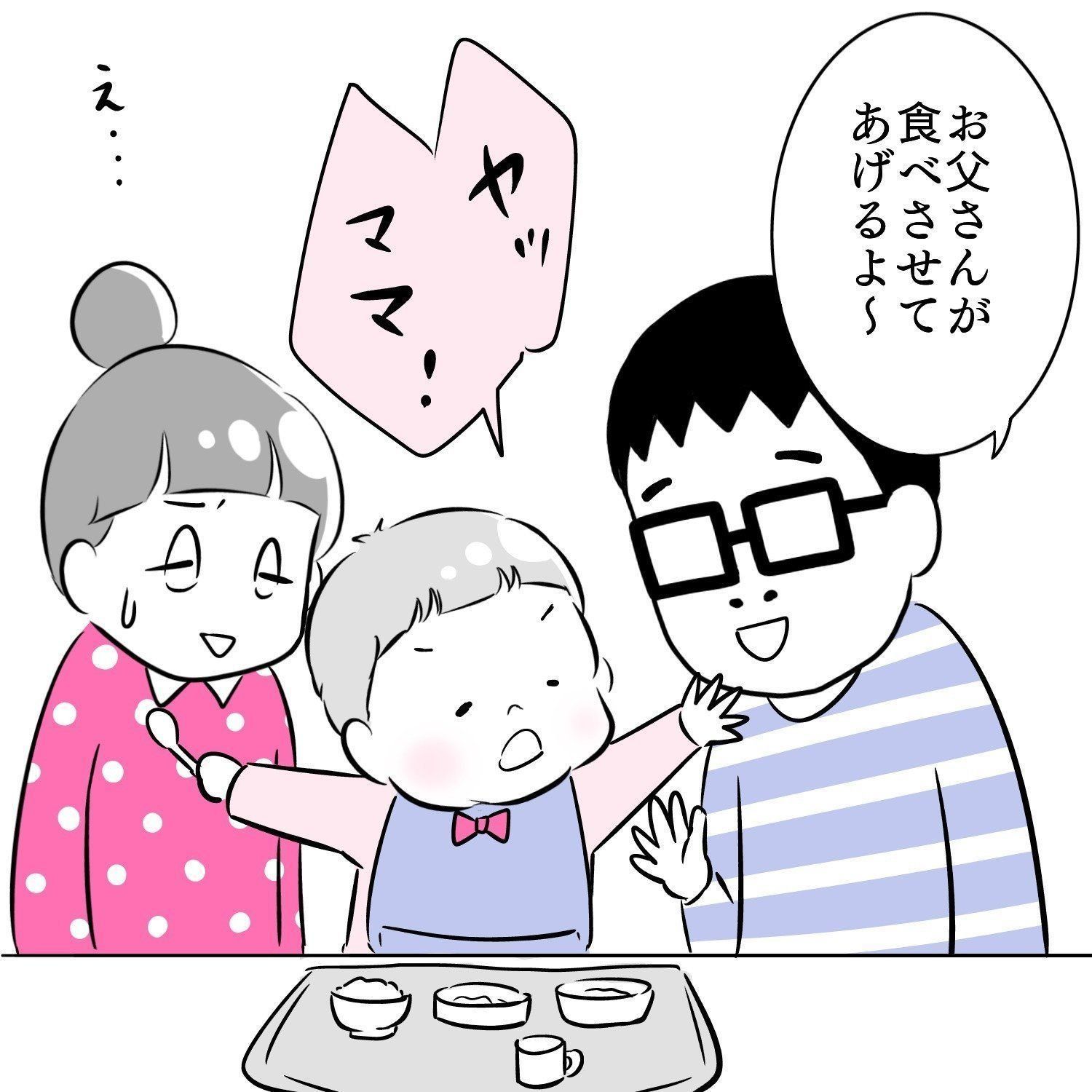 旦那が手伝ってあげようとすると、スプーンを渡さない!と言わんばかりに嫌がり、旦那をかいくぐって私にスプーンを渡してくる息子…。