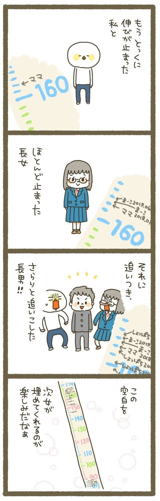 漫画では3頭身くらいの可愛い感じで描いていますが、実際はもう私の背を追い抜きましたからね。