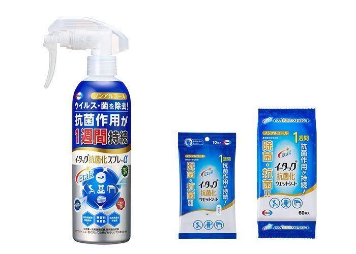 感染を防ぐための対策の基本は手洗いですが、物についたウイルスや菌は「イータック抗菌化スプレーα」でシュシュッと除菌+抗菌しましょう。
