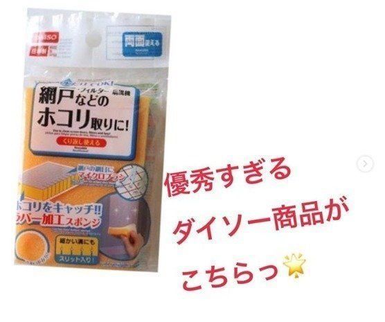 Chiiさんはダイソーで購入したホコリ取りスポンジをこそうじ(小掃除)に活用。こちらは細かい部分のホコリ取り用に作られていて、網戸や換気扇フィルターなどの掃除にばっちりなんだとか!水をつけてこするだけ、洗えば繰り返し使えるというコスパのよさも◎!気になった方はぜひチェックしてみてください。