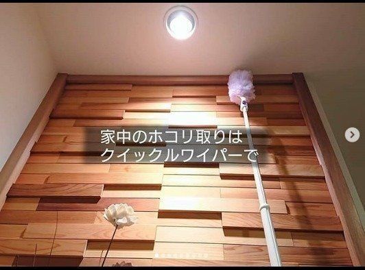 Kさんは伸縮・角度調整が可能なタイプのクイックルワイパーのハンディタイプをこそうじ(小掃除)に活用!エアコンやペンダントライトなどの高いところや狭いところもこれでさっと撫でれば簡単にホコリが取れるんだとか。こちらもモップ部分が汚れてきたら取り替えるだけなのでその手軽さもうれしいですよね。