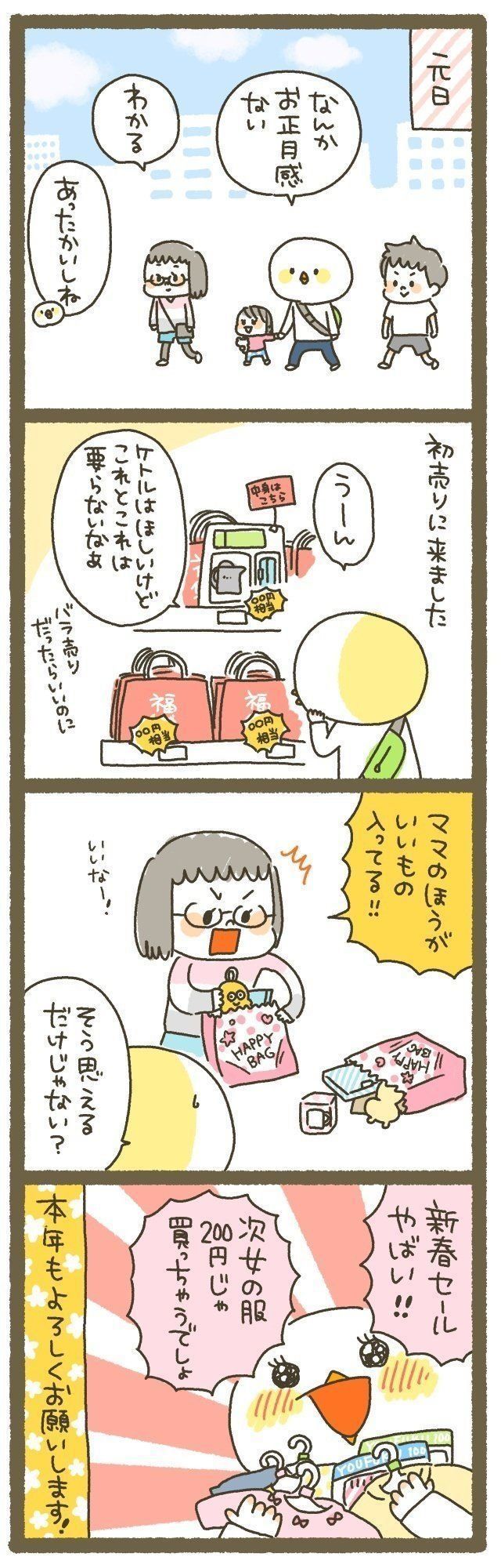 ごろごろして、お昼前に100円の回転寿司を食べ、そのあと大型スーパーへ行って福袋を見たり、次女の服を買いあさったりと、とても充実してましたよ!