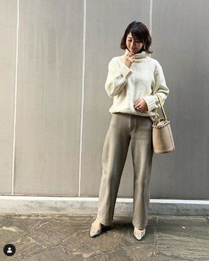 amiさんはワントーンコーデでキレイめな印象に。パンプスとの相性も◎なので、簡単に大人コーデも楽しめます。